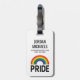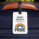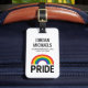 Este diseño presenta la palabra orgullo bajo un arcoiris colorido.