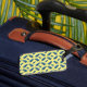 Patrón de hojas azules sobre un fondo limón amarillo claro. Se puede cambiar el color de fondo.