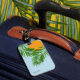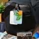 Esta etiqueta para el equipaje presenta un elegante diseño minimalista con un sol tropical detrás de hojas de palma sobre un fondo azul del cielo. Personalice agregando su nombre en una fuente elegante y caprichosa.
