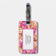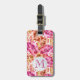 Una elegante etiqueta para el equipaje muestra un patrón de frondas tropicales de palmeras en rosa y naranja caliente y tu monograma inicial con letras de moda en la parte delantera y tu información de dirección impresa en la parte posterior O elige el estilo que puedes insertar tu tarjeta de visita en la parte posterior. Crea por ti mismo o dámela como regalo. Bolsa de insignia y más artículos de nuestra colección de viajes.