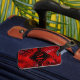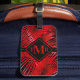 Las frondas de palma rojas tropical sobre negro presentan su monograma con letras de moda en la parte delantera y una ranura de tarjeta en la parte posterior para una fácil identificación. Crea por ti mismo o dámela como regalo.