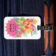 Las coloridas flores de hibiscos tropicales ayudan a que su bolsa destaque entre la multitud. Perfecto para equipaje, bolsos de mano, bolsos de ordenador y más. Flores rosas y amarillas con vegetación acentuada por un espacio rosa caliente para personalizar tu nombre e información. Ranura para tarjeta de visita en la parte trasera. La etiqueta se puede personalizar fácilmente con las sencillas instrucciones de menú de Zazzle.