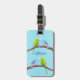 Las etiquetas de las maletas presentan bonitos budgies en azul y verde para todos los amantes de las aves - jadeo digital en fondo azul claro. ¡Etiquetas de equipaje únicas y bonitas para todos! Personalizado Antecedentes y texto!