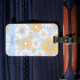 Introducing this personalized luggage tag featuring a mesmerizing retro bohemian daisy graphic design in light blue, gold, and white. This travel accessory is a perfect blend of artistry and functionality, promising you a unique and stylish experience whether you're working or playing.