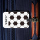 Patrón de fútbol Niños etiqueta de equipaje de cumpleaños de futbolista personalizada con su nombre personalizado. Diseño de patrones de fútbol para todos los amantes del fútbol para la fiesta de cumpleaños perfecta para los futbolistas