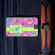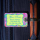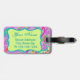 Identifique su equipaje, mochila o bolso de computadora con esta divertida y elegante etiqueta de equipaje que presenta un diseño paisajista llamativo personalizado con su monograma, iniciales o nombre. Los colores llamativos de este diseño paisley moderno presentan un fondo rosa magenta con una tira verde lima y emblema para la personalización y para añadir la información de contacto en el reverso. Los paisajes luminosos, frescos y modernos hacen de un hermoso diseño artístico que incluye palabras inspiradoras de Amor, Esperanza, Fe, Inspire, Corazón, Ser Feliz, Sueño y Vivir en el fondo entre los paisajes. Esta colección de Mod Paisley, diseñada por Phyllis Dobbs, utiliza los colores verde azulados, turquesa, verde limón, vino, amarillo, fucsia y naranja para crear una diversión y capricho sobre el tradicional y popular motivo de paisley. El motivo paisley es intemporal, pero este arte original es a la vez moderno y contemporáneo. Personalizable completo para la personalización con tus propias palabras para añadir tu propio mensaje.