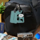 Una burbuja de discursos personalizado, con el texto dentro de "¡hey!, este equipaje pertenece", y un mapa del mundo negro como fondo, donde puedes completar la frase con tu propio nombre o nombre de compañía. Editarlo fácilmente usando el botón "personalizar" y hacer los cambios necesarios - un elemento simple y divertido