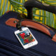 Esta divertida etiqueta de equipaje muestra un caprichoso ilustracion de estilo de un perro del Territorio Escocés en un kilt, tomando un dram wee y fumando una pipa! Este diseño incluye un nombre personalizado en la parte delantera con letras elegantes de guiones, y sus datos de contacto en la parte posterior.