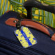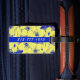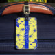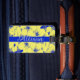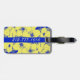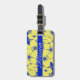 Es un bonito y una especie de maleta de flores tropicales amarillas contra un fondo azul cobalto. Listo para ser personalizado con su nombre en la parte delantera y número de teléfono en la parte posterior.