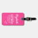 Consiga su bolso de viaje con esta etiqueta de equipaje rosa brillante, personalizándolo con su nombre y detalles personales en la parte de atrás. Puede cambiar el color del fondo haciendo clic en el botón de personalización.