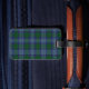 Bonita etiqueta de equipaje hecha en el colorido patrón de manta tartán azul y verde del clan Sutherland. Un área de texto en blanco de borde verde, en el frente tiene texto azul listo para personalizar con su información. La manera perfecta de ver su equipaje, y hace una gran idea de regalo.