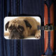 Cierre de un Pug con una expresión de culpabilidad en la cara. Aislado sobre un fondo blanco.