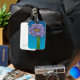 Etiqueta Para Maletas Purple Square Flower with Blue background