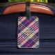 Etiqueta Para Maletas Púrpura, dorada y azul Tartán