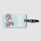 Etiqueta personalizada linda y femenina del equipaje con las rayas azules en colores pastel de la acuarela y bicicleta con la cesta de la flor.