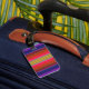 Haga que su equipaje se destaque en un carrusel del aeropuerto con diseños únicos de etiquetas! Esta etiqueta de equipaje de colores vivos está decorada con un patrón a rayas en naranja, violeta, amarillo, rojo, verde, violeta y negro que se asemeja a un bonito arcoiris abstracto. Personalizar el reverso con su información personal.