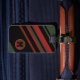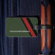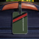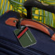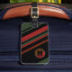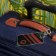 Un diseño gráfico y moderno a rayas para un viajero elegante, personalizado con su inicial en un círculo con rayas diagonales de colores diferentes y elegantes... para viajar con estilo.