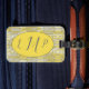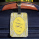 Tiras trituradas con Peacock Inspirations Etiqueta de equipaje del titular de la tarjeta de visita. Mantener el fondo amarillo o cambiarlo a personalizar. Monogramado.