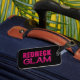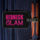 Etiqueta divertida para equipaje para "chicas de campo" que aman vivir alto y con estilo! Texto "Redneck Glam" en rosa con la apariencia de brillo rosa intenso en el glam... fondo negro.