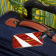 Esta es una etiqueta roja y amarilla para el equipaje abstracto. ¡Algo para que todo el mundo pueda alardear todos los días!
