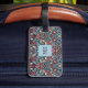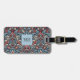 Patrón vibrante de damasco rojo y azul monogramado etiqueta de equipaje. Se puede personalizar con sus propias iniciales.