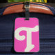 Etiqueta Para Maletas Rosa brillante inicial monogramado negrita