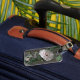 Hermosa rosa rosa rosa y sobre madera templada, personalizada con su dirección en la parte de atrás para asegurarse de que sus maletas regresen a su casa mientras viaja.
