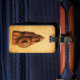 A rustic, digital "wood carving of a viking warrior with shield, sword and helmet, superimposed on an old paper or parchment background image. Customize by adding your own name and address.