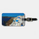 Etiqueta del equipaje con la impresión de Santorini, las islas griegas de la foto