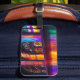 La hermosa etiqueta de equipaje artístico cuenta con una pared interior de la iglesia con colores arcoiris y vidrios manchados. Una IA generó una visión de inclusión y refugio para todos.