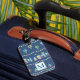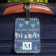 Whimsical illustrated pattern of a cheerful village decorated with bunting for a summer gala with colorful sailboats and hot air balloons. Personalized luggage tag. (see matching passport holder)