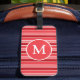 Etiqueta Para Maletas Shades of Red and White Striped Monogrammed