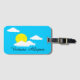Etiqueta Para Maletas Sol sonriente con nubes esponjosas: turquesa