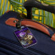 Etiqueta Para Maletas Spider Steampunk sobre fondo morado