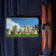 Una pintura digital de Stonehenge con una gran nube blanca en un día de verano está impresa en la parte delantera de la etiqueta del equipaje. Por favor, utilice la herramienta de edición para personalizar de la etiqueta de equipaje y añada información de contacto al reverso.