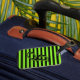 Etiqueta de equipaje de franja personalizada. El texto se puede personalizar.