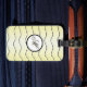 Soft hues of pastel butter yellow with stylish, abstract, black and wavy lines as a backdrop for the white circle centerpiece and contrasting black border make your personalized initial stand out! A subtle yellow drop shadow accents the black calligraphy initial. As calligraphy letters vary in swoops and curves, Zazzle's design tool allows you to shrink, enlarge, and reposition your initial if needed. This luggage tag looks great with any color of luggage for your flight and travel needs!