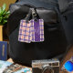 Patrón de estrías moradas y naranjas. Rayas moradas y naranjas sobre un fondo blanco.