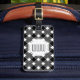 TELA ESCOCESA ELEGANTE DEL EQUIPAJE TAG_ BLACK/WHITE, INICIALES NEGRAS EN LA ETIQUETA BLANCA. TEXTO NEGRO EN LA PARTE POSTERIOR DEL BLANCO