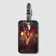 "Tempatía Infernal" Una muestra seductora se alza en un bosque sombrío, sus fieras alas se extendieron mientras ella blande una llama brillante y un tridente criminal. Vestida de rojo oscuro, exuda poder, peligro y encanto oscuro.