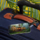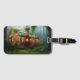 Un taller de estilo Steampunk en la orilla de un río musgoso: una etiqueta de equipaje de arte digital creada con software de IA
