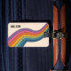 Destacar con esta elegante etiqueta de equipaje de franjas retro de los años 60 y 70. Perfecto para añadir un toque de color y nostalgia a su equipo de viaje.