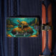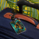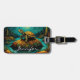 Una tortuga en una etiqueta para el equipaje de la roca del río. Todo el texto de ejemplo se puede personalizar fácilmente con su redacción. También puede cambiar las fuentes, tamaños y colores del texto.