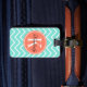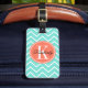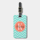 Etiqueta Para Maletas Turquesa Chevron con el monograma anaranjado