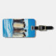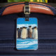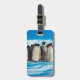 Fotografía de un pequeño grupo de pingüinos sobre la nieve con colores azul acuático.