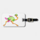 Un avestruz muy poco común que corre alardeando de sus plumas de color arcoiris.