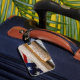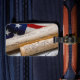 Copies of the Declaration of Independence and US Constitution in rolled up scrolls with a vintage American flag