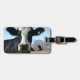 Imagen divertida de una vaca negra con ojos locos con un fondo azul del cielo. ¡Hace un gran regalo!