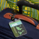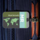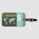 Una manera elegante y elegante de identificar y diferenciar sus pertenencias en el aeropuerto... nombre, iniciales y el mapa del mundo