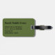 Etiqueta para el equipaje con el nombre y la dirección en un color de fondo verde oliva sólido. Personalice con su nombre y la información de dirección utilizando las plantillas más sencillas. El color de fuente, el estilo de fuente y el tamaño de fuente son personalizables.